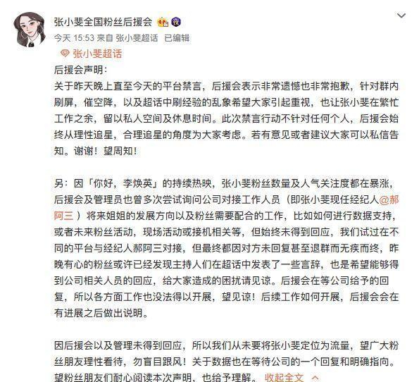 #张小斐后援会发文#