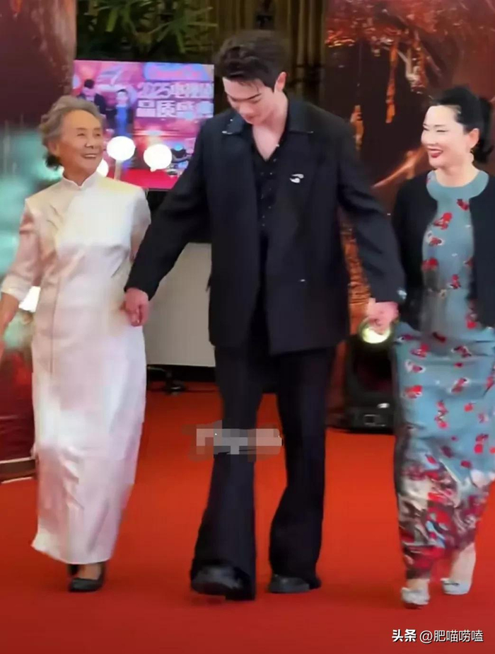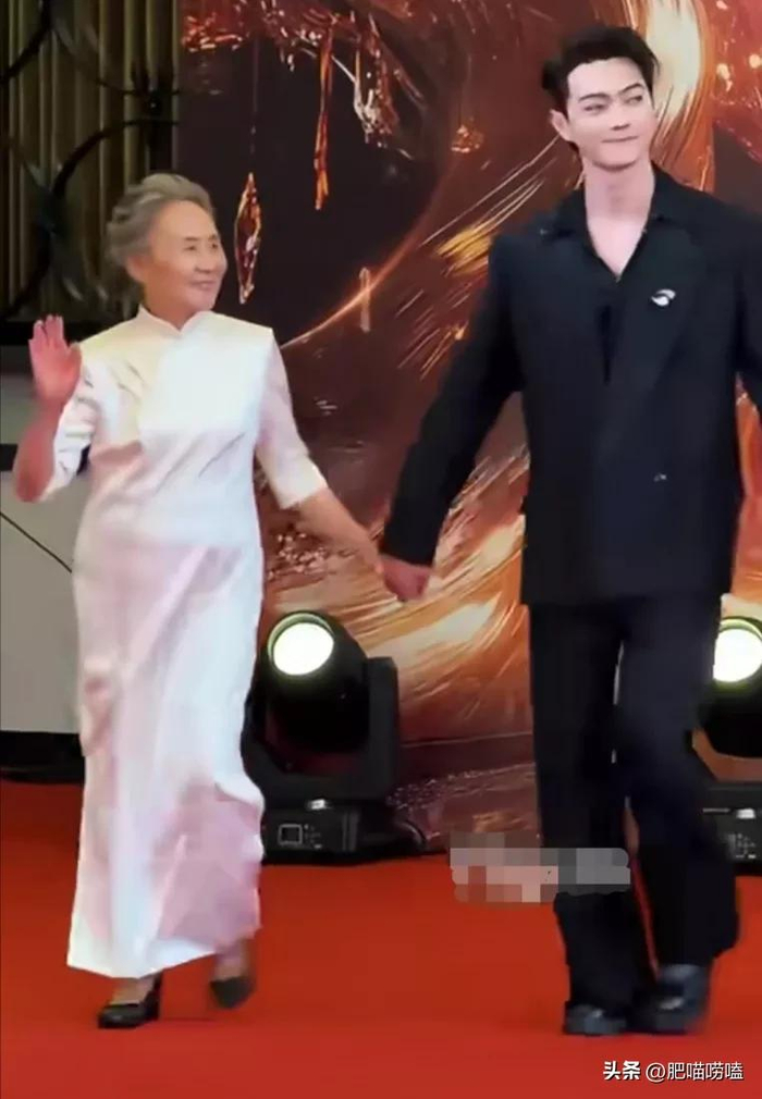 在走红毯的时候,许凯走在中间,牵着吴彦姝奶奶和何赛飞老师,三个人脸上都笑的很开心,这一幕莫名觉得他们是“一家三口”的既视感,好温馨的画面。