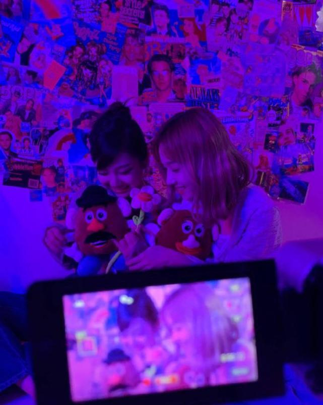 而另外发布的两张照片,看上去则更像是拍摄花絮。宁艺卓单手揽着金玟庭,另一只手则举着花朵形状的装饰品,金玟庭则是一只手牵着宁艺卓的手,另外空出来的那只手里就举着一个米妮的气球,结合背后的照片墙和两人拍照都不忘搭背牵手的黏糊状态,简直就跟和闺蜜出行一起拍甜蜜旅游照没什么区别。