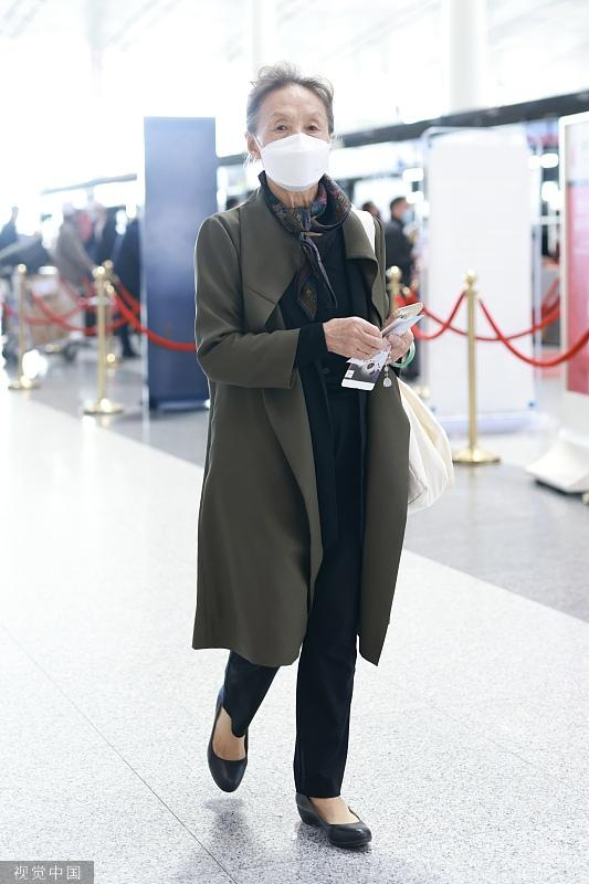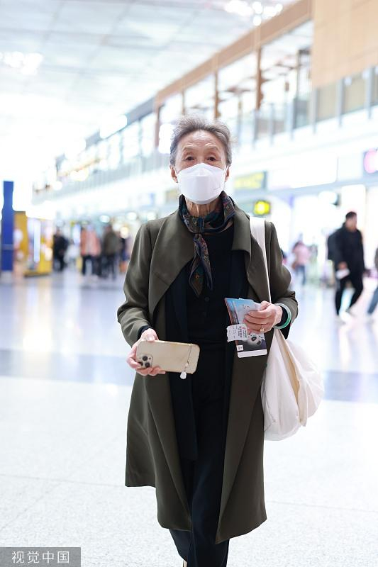新浪娱乐讯 2023年4月25日,北京,85岁老戏骨吴彦姝现身首都机场。(视觉中国/图)