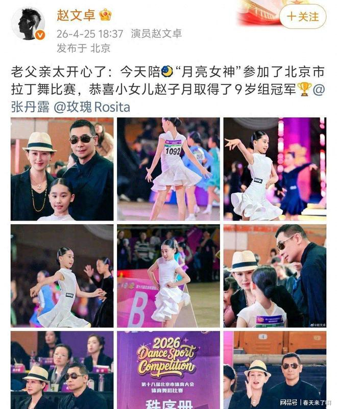 赵文卓9岁女儿子月拉丁舞夺冠,哥哥赵子龙为妹庆祝