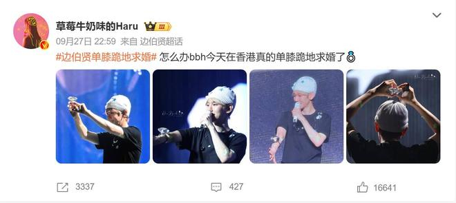 此次事件并非孤立互动,而是边伯贤2025年8月至9月中国巡演情感线的高潮收官。粉丝总结出一套“恋爱全流程”:澳门场(8月)为“表白阶段”,他献唱《特别的人》并告白“大家是我特别的人”;台北场(9月初)是“求婚试探”,从最初害羞回应结婚呼声到反撩粉丝“和我在一起的话,一整天都会很有趣”;香港场则正式完成“结婚仪式”,通过单膝跪地、钻戒道具和“老公老婆”的称呼,为这场持续两个月的互动画上情感闭环。