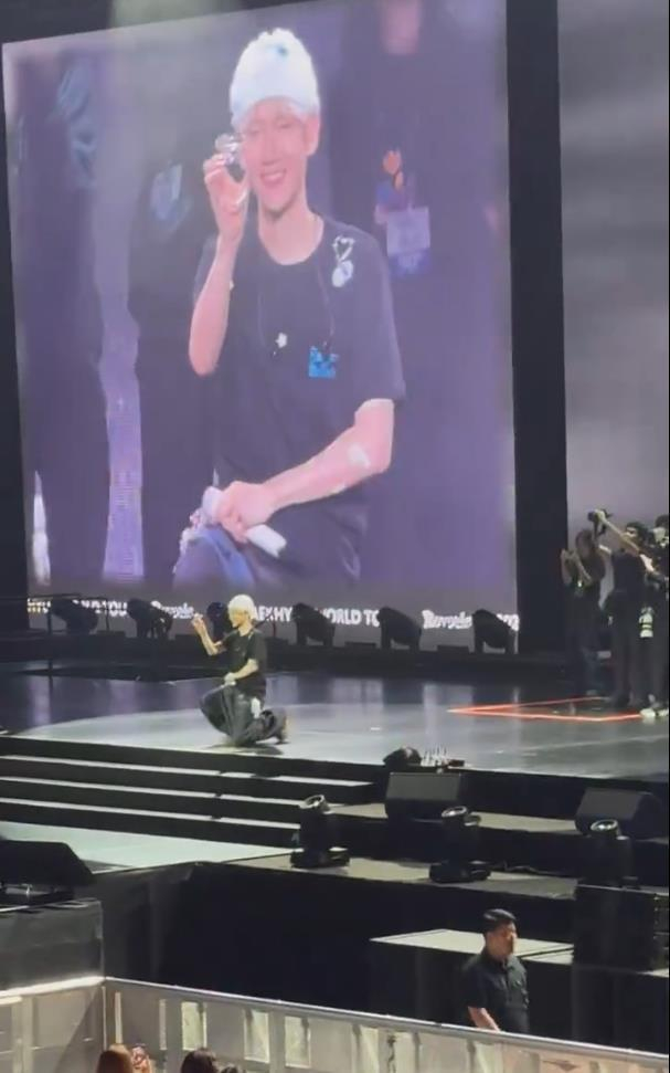 边伯贤单膝跪地向全场观众“求婚”,与粉丝完成浪漫闭环