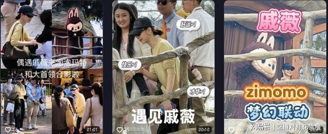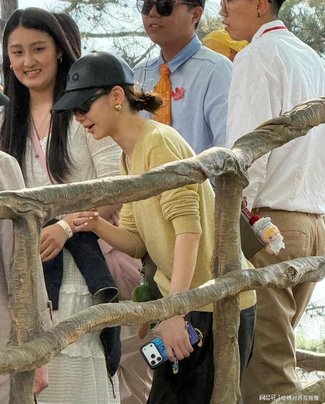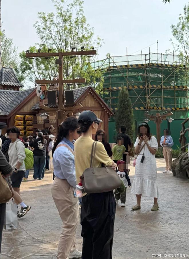 戚薇时不时蹲下来跟他说话,陪他排队和labubu玩偶合影,遇到认出她的路人想拍照,她也大大方方答应,没有半点架子。