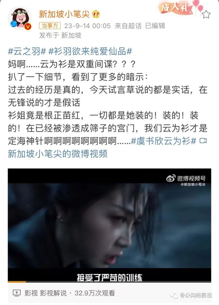 那既然剧情bug频出,为什么还能讨论的这么起劲儿?原因不外乎三个方面:第一点很简单就是“被黑”,不可否认这的确是《云之羽》这部剧的外部声量之一;第二点在于嗑cp,因为通常来讲,带嗑点的剧情大多与逻辑二字挂不上钩,不需要为bug买单;第三点则是《云之羽》特有,即“造谣式追剧”。
