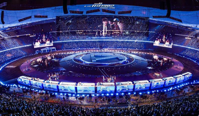 2026年张杰鸟巢演唱会的舞台,被张杰命名为“斗转星移”。10000+平方米超大主表演区通铺鸟巢内场,11000+平方米LED巨幕环绕鸟巢四方,2400平方米吊装透明悬浮屏,组合6900平方米地屏,超百米列车“开”进国家体育场,巨型超长列车编组,环绕12个时间中转车站,