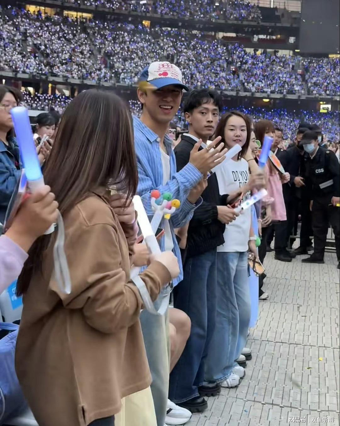 这次现身鸟巢,李现打扮得超清爽随性:蓝白条纹衬衫+白内搭+棒球帽,低调又帅气,完全没有顶流架子,一看就是来纯嗨的。虽然戴了口罩,但眉眼和身形太有辨识度,还是被现场歌迷一眼认出来,路人镜头里的他,全程嘴角压不住笑意,状态松弛到不行。