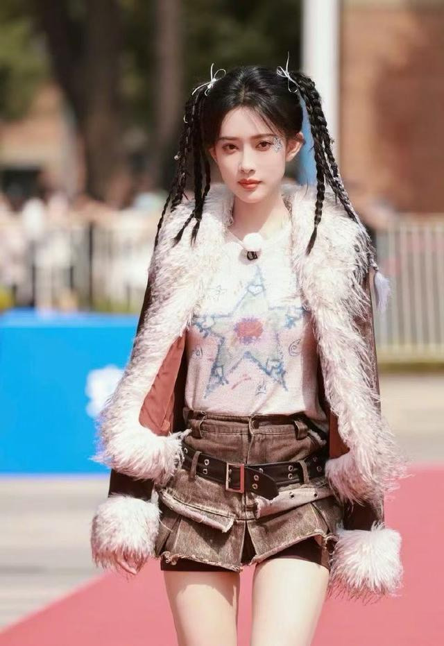 作为团队中的“元气妹妹”,宋雨琦此次以粉白拼接运动套装亮相,泡泡袖设计与高马尾发型完美复刻千禧年流行元素。粉色眼影与腮红的点缀,更凸显其甜美元气特质。路透视频中,她与沙溢、张真源组成“青春三人组”,蹦跳间活力四射,被粉丝戏称“行走的草莓冰淇淋”。